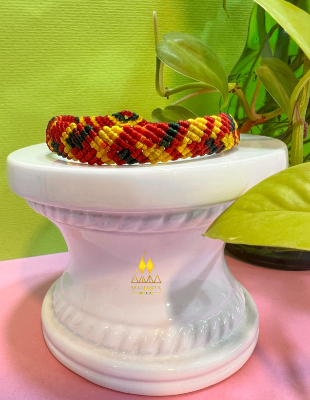 دستبند مکرومه مدل اسپرت بافت جناغی طیف رنگ شاد ( قرمز، زرد، سبز)- کد m1005